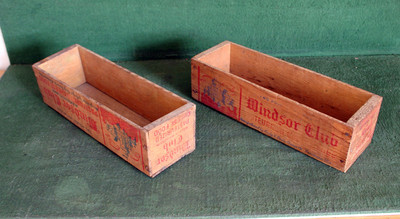 LOT of 2 vintage WINDSOR CLUB LITHO wood CHEESE BOX solid COMPLETE
