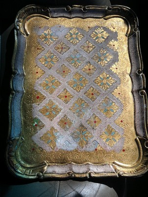 VINTAGE GOLD FLORENTINE ITALY TRAY FLORENCE GILT GOLD TOLE WARE