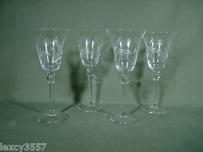 VINTAGE FOUR ETCHED FLORAL CRYSTAL WINE GLASSES MADE IN ITALY