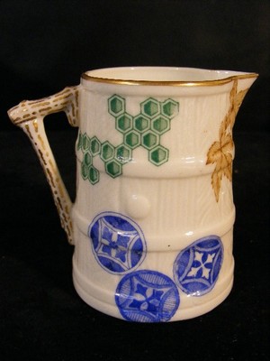 ANTIQUE 1885 ROYAL WORCESTER CREAMER / PITCHER - ASIAN DESIGNS