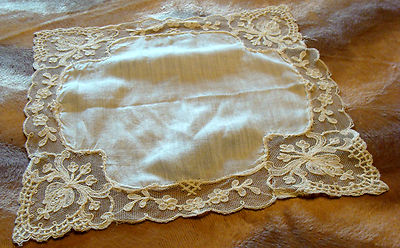 Title (ebay affiliate link): ANTIQUE TAMBOUR LACE COTTON WEDDING HANKIE LACE TRIM DOLL HAT MAKING VICTORIAN