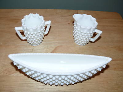 THREE PIECES FENTON MILK HOBNAIL GLASS
