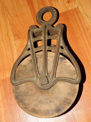 Title (ebay affiliate link): Antique / Vintage Cast Iron / Wood Barn Pulley Farm Tool Hay Loft Rustic 1800's