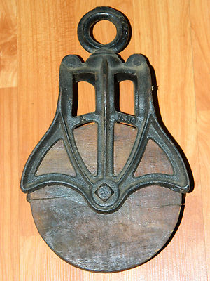Title (ebay affiliate link): Antique / Vintage Cast Iron / Wood Barn Pulley Farm Tool Hay Loft Rustic 1800's