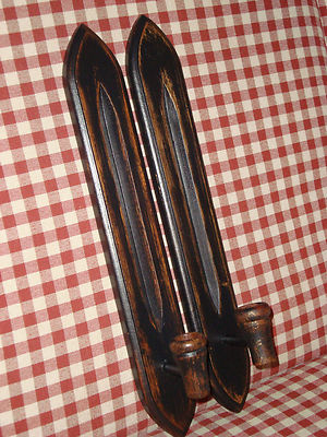 primitive colonial wood candle holder wall sconce black distressed slim set of 2