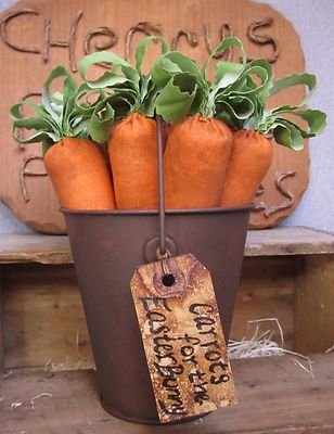 Title (ebay affiliate link): Primitive Easter Rusty Bucket of Carrots Shelf Sitter Bowl Fillers Ornies