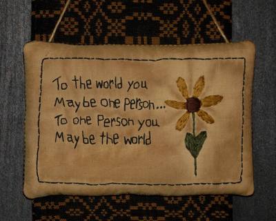 Primitive Stitchery Hanger ~ To the World You May Be One Person........