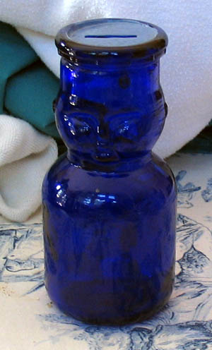 Glass Bank Cobalt Blue Baby Faced Milk Slotted Lid