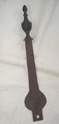 Title (ebay affiliate link): ANTIQUE 18TH C KNIFE BLADE ANDIRON PARTS-BRASS FINIAL, FERRULE & FORGED BLADE