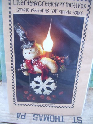 Title (ebay affiliate link): PRIMITIVE SNOWMAN SNOWFLAKE CANDLE LAMP DOLL PATTERN PACKET christmas NEVER USED