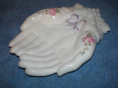 Westmoreland Milk Glass Hands w/Grapes,Ribbons & Bows