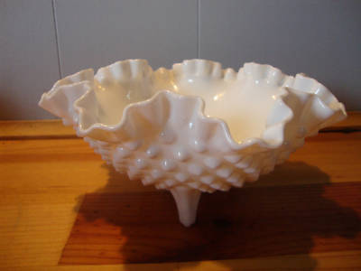 Fenton Hobnail Milk Glass Tri Footed Bowl