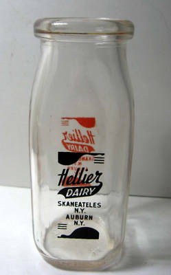 Vintage Hellier Dairy Half Pint Milk Bottle Auburn NY