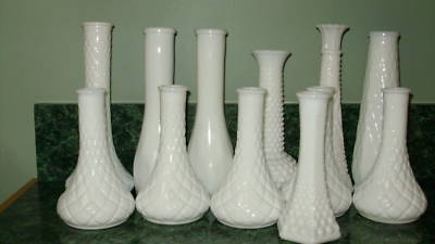 LOT OF 12 MILK GLASS BUD VASES ASSORTED MAKERS MUST SEE