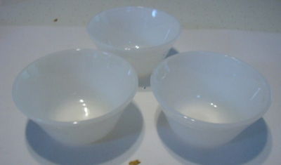 3 VINTAGE WHITE MILK GLASS FEDERAL DESSERT BOWLS