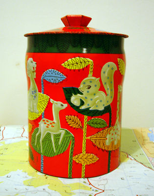 Title (ebay affiliate link): Rare red 70's vintage retro cutness tin box with animals