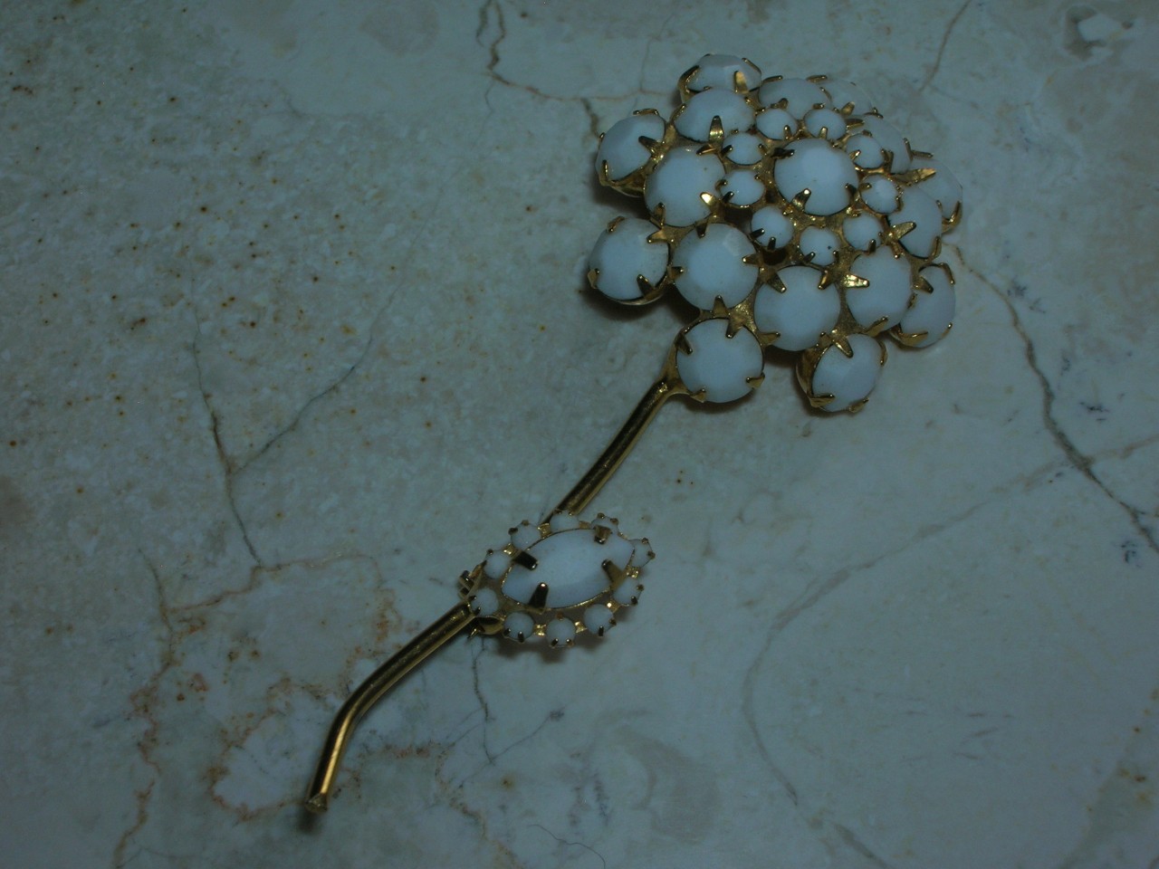 VINTAGE WHITE MILK GLASS FLOWER PIN, MINT CONDITION