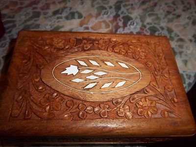 Title (ebay affiliate link): Vintage Hand Carved Lined Box With Inlaid Flower & Exquisite Carving, India