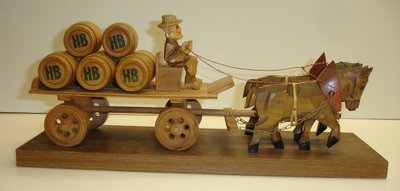 HAND CARVED GERMAN HB HOFBRAU BEER WAGON
