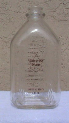 Vintage Milk Bottle "Will 'O' Do Dairy" Imperial Beach