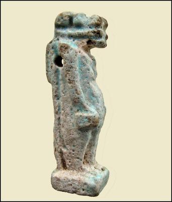 Ancient Egyptian faience amulet of Tawaret, the pregnant hippo.