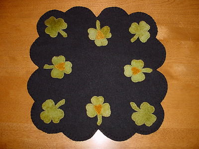Title (ebay affiliate link): ~*~ Green Shamrock Wool Applique Penny Rug Candle Mat ~ St Patrick's ~*~
