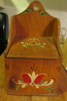 Title (ebay affiliate link): Antique or Vintage Primitive Tole Painted Wood Hanging Salt/Candle Box with Lid