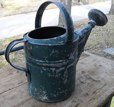 Title (ebay affiliate link): Antique Watering Can Old Green Paint Heavy Metal