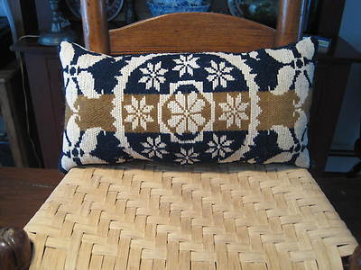 Title (ebay affiliate link): Unusual Antique Coverlet Pillow in Navy, Mustard and Cream