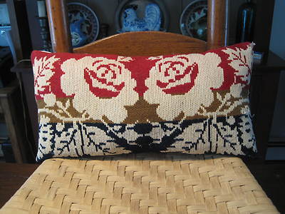 Title (ebay affiliate link): Pillow made from an early antique coverlet in navy, red, mustard and cream