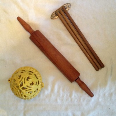 Title (ebay affiliate link): Vintage Kitchen Lot - Aluminum String Holder-Primitive Towel Holder-Rolling Pin
