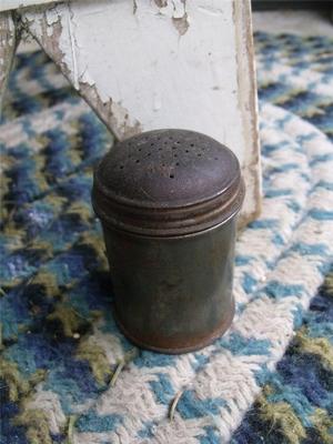 Title (ebay affiliate link): Small Primitive Antique Tin Sugar Shaker Spice Shaker Original Dark Patina