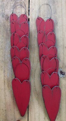 Title (ebay affiliate link): Primitive Wood Red Heart Ornaments Winter Tree Gathering (12)