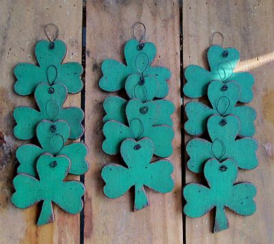Title (ebay affiliate link): Primitive Wood Shamrock Ornaments Prim Tree Gathering (12)