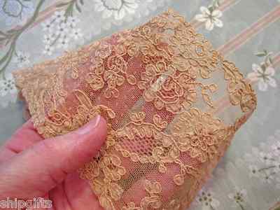 WIDE Antique French Alencon Cotton Lace Trim Airy Edwardian Doll Dress Latte 15"