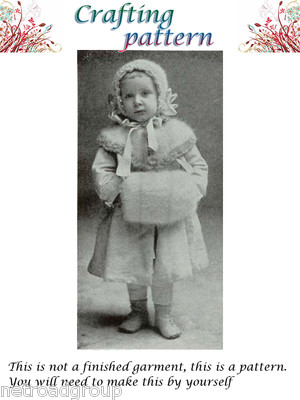 Title (ebay affiliate link): Antique Vintage Edwardian Child Doll Girl Knit Crochet Cape Bonnet Muff Pattern