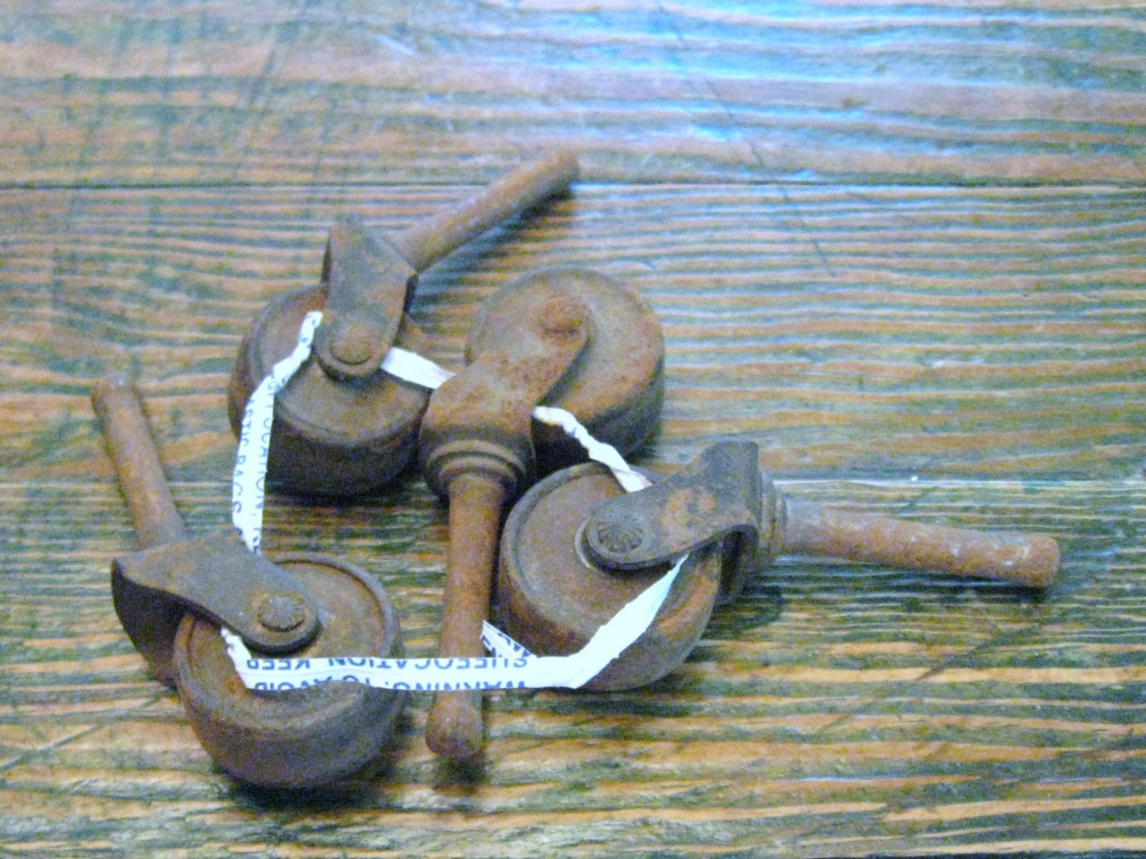 Title (ebay affiliate link): SET OF 4 ANTIQUE VINTAGE FURNITURE METAL CASTERS WHEELS