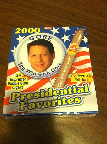 Title (ebay affiliate link): AL GORE PRESIDENTIAL FAVORITES BUBBLE GUM CIGARS MINT Unopened