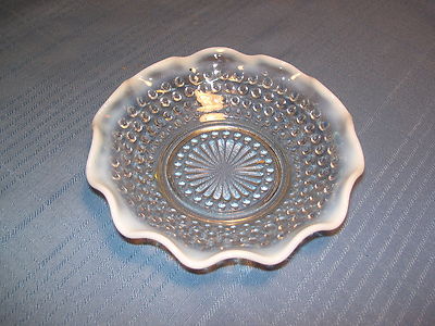 Title (ebay affiliate link): Opalescent Moonstone hobnail clear / white crimped edge dessert bowl