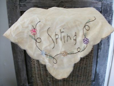 Title (ebay affiliate link): prim aged vintage linen ~ Spring ~ Vines and Daisy Poseys