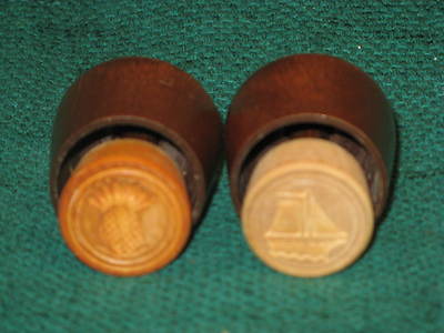 2 primitive wooden butter press mold sailboat and pineapple wood