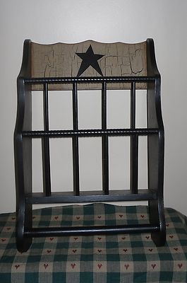PRIMITIVE CRACKLE MAGAZINE AND TOWEL RACK COUNTRY FARMHOUSE DECOR BLACK STAR