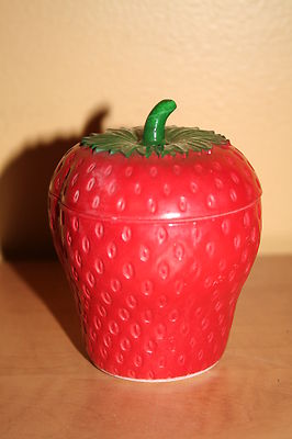 Title (ebay affiliate link): Vintage Hazel Atlas Strawberry Marmalade Jam Sugar Jar Lidded Milk Glass c. 1941
