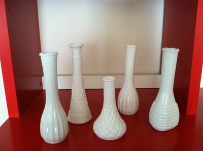 Title (ebay affiliate link): Lot of 5 Milk Glass Bud Vases/ Great for Wedding ,Showers, Vintage Milk Glass