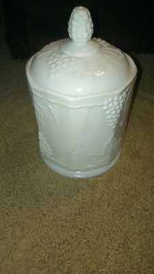 Title (ebay affiliate link): Milk Glass Canister Indiana Colony Harvest Milkglass +lid small S & H stamps