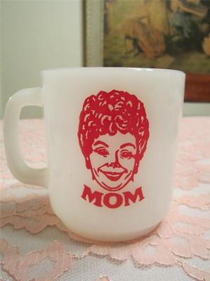 VINTAGE Glasbake Red White MOM Milk Glass Mug Coffee Cup