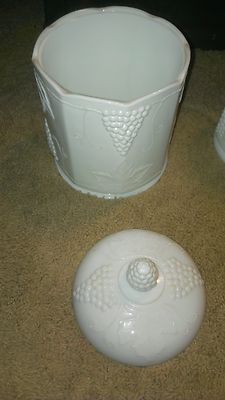 Title (ebay affiliate link): Milk Glass Canister Indiana Colony Harvest Milkglass + lid large S & H stamps