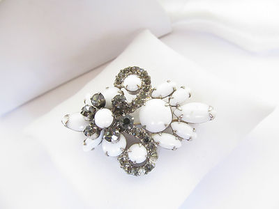 Title (ebay affiliate link): Vintage Prong Setting Milk Glass & Smokey Rhinestones Floral Brooch Pin 2 1/8" L