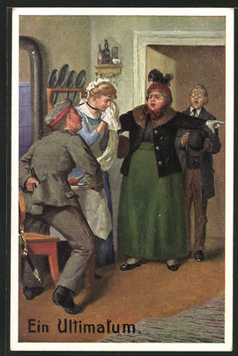 German WWI Soldier Humor - Ultimatum Enemy declares last Ultimate postcard