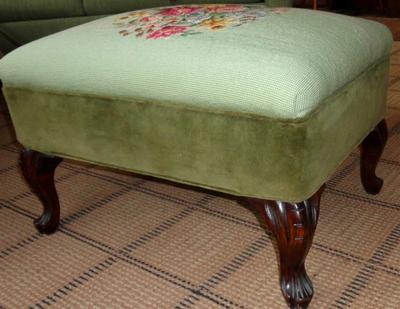 Title (ebay affiliate link): Vintage Red Flowered Needlepoint 1940s French Cabriolet legged footstool